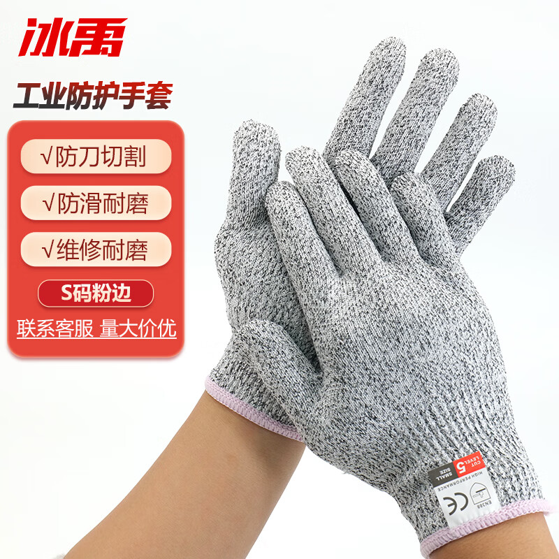 冰禹 防割手套 BH-156 S码 粉边 1双