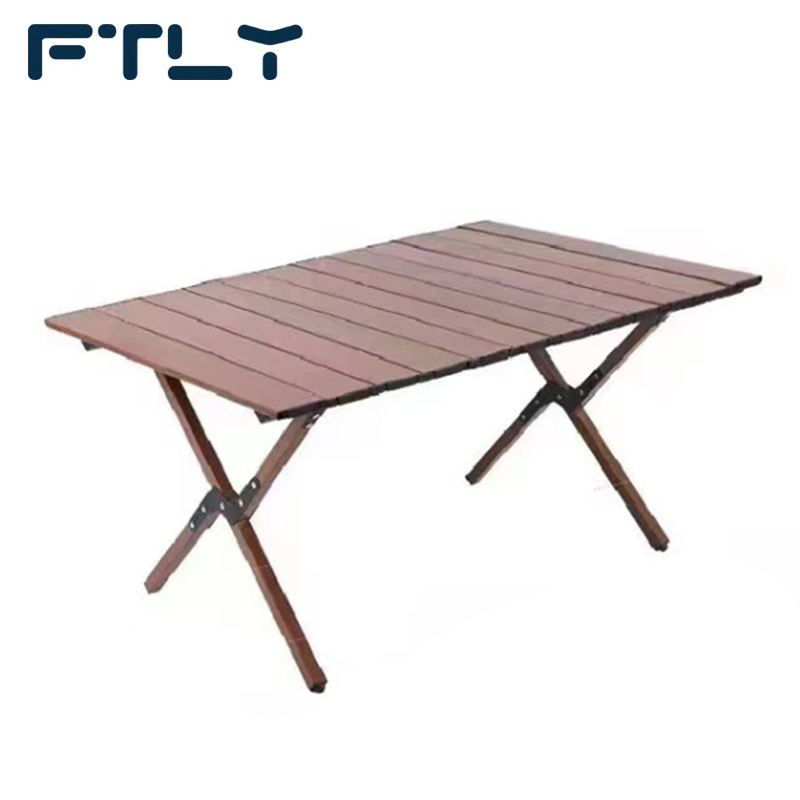 飞图乐 露营折叠蛋卷桌 DJZ0301 胡桃木色 碳钢 90*60*45cm 1个