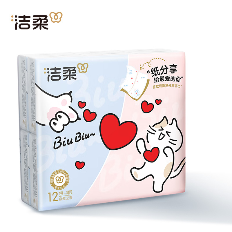 洁柔 猫咪爱心印花手帕纸 JM234-12 7片×4层 12包 1件