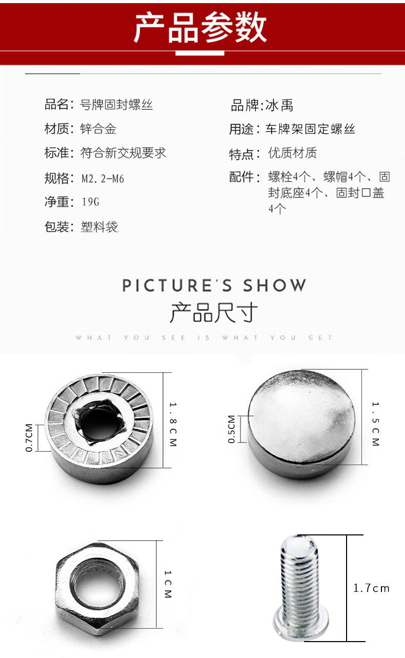 冰禹 汽车机动车牌架固定螺丝 BYC-156 锌合金 5包 1件