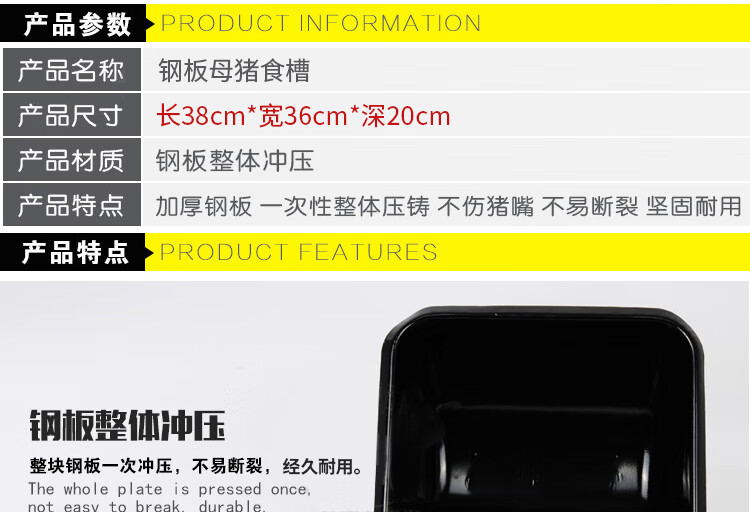 海斯迪克 三爪钢板母猪食槽[下架] HKCC28 8斤重钢板普通款(3爪) 38*36*20cm 1个