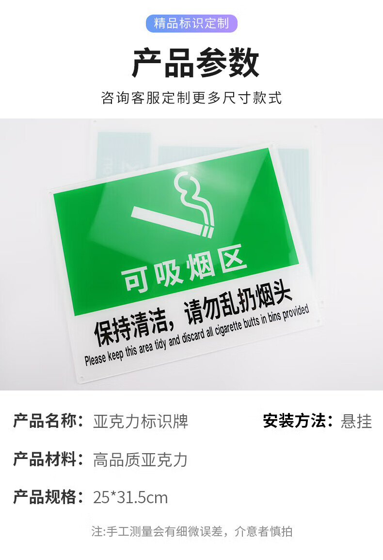 冰禹 吸烟警告禁烟标示戒烟标识 BYP-95 亚克力UV 禁烟区域 25*31.5cm 1个