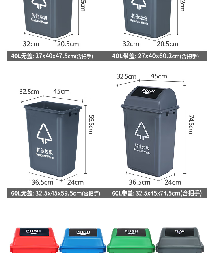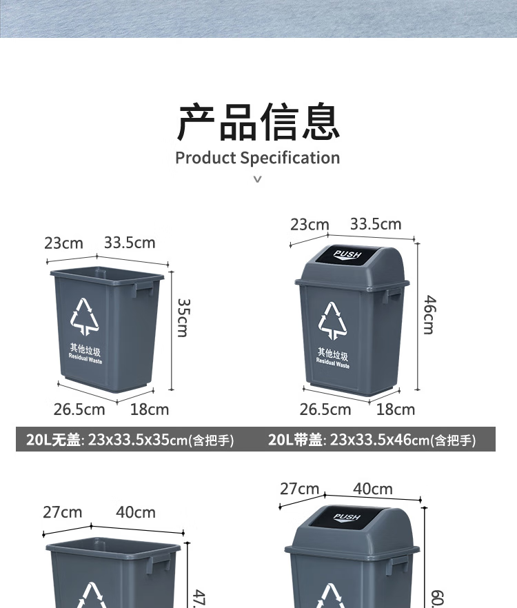 • 颜色灰色(其他垃圾有盖)