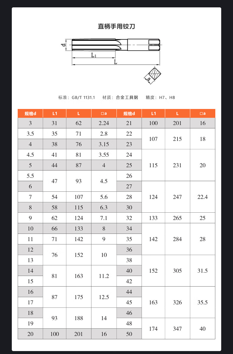 上工 手用铰刀 合金工具钢 直柄 H7 GB/T1131.1 15mm 1把