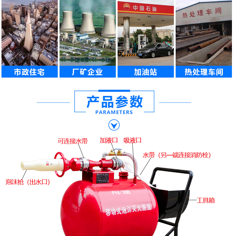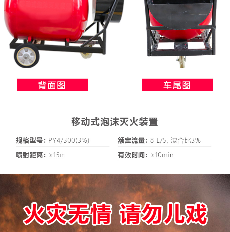 洪湖 PY8/400半固定式泡沫灭火装置轻便型可移动式泡沫罐灭火装置设备400L推车式泡沫罐消防器材工厂商用
