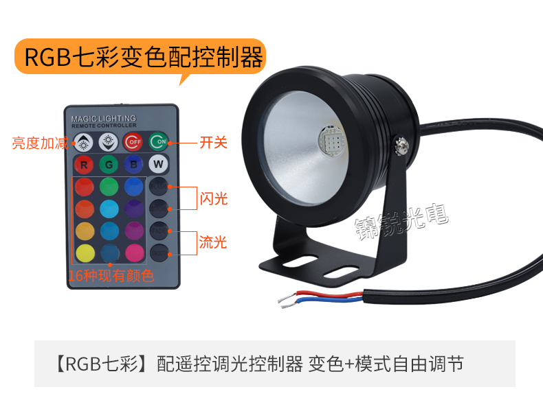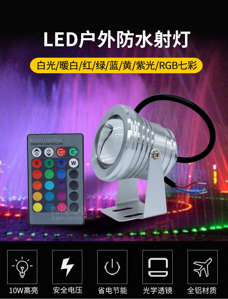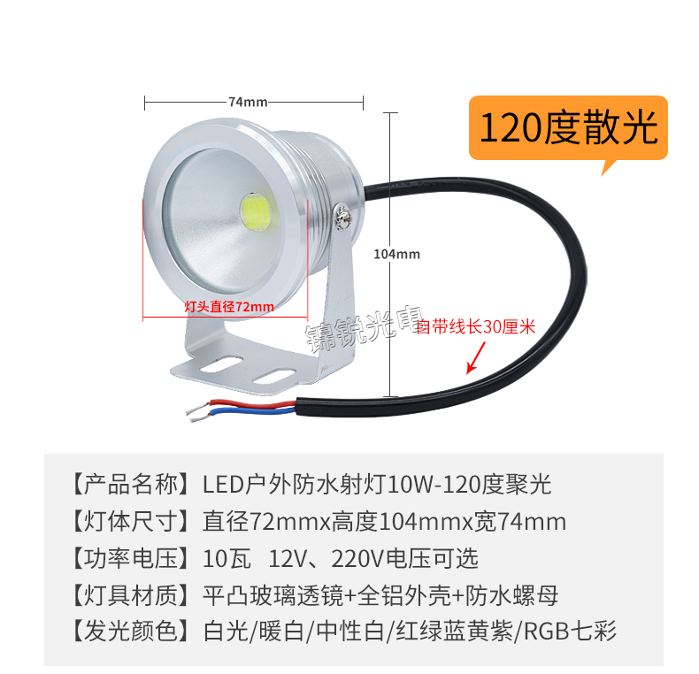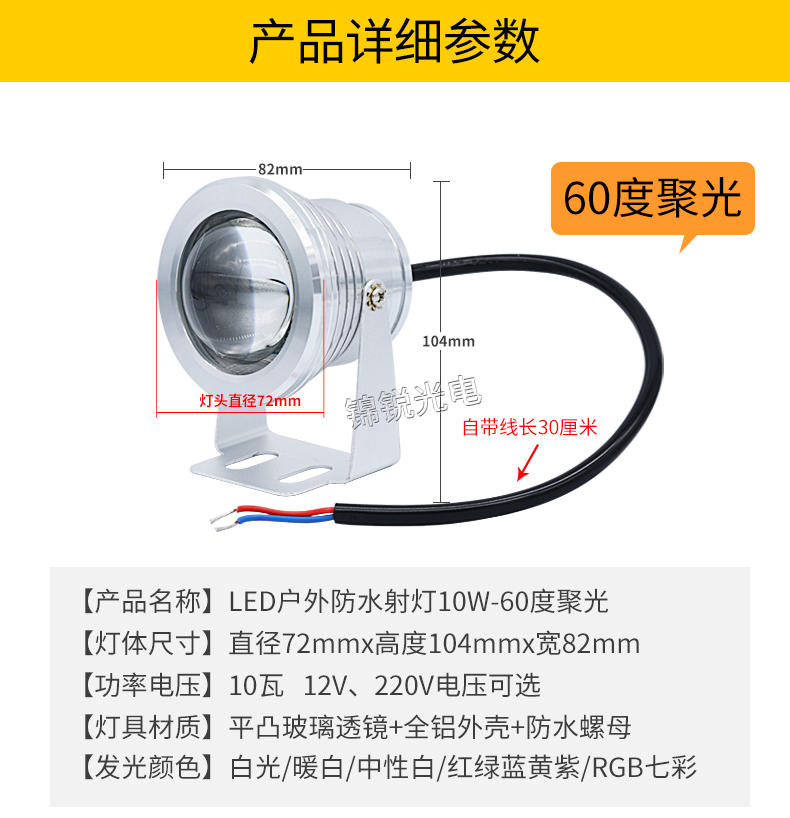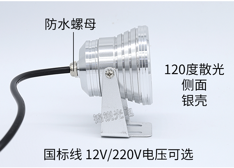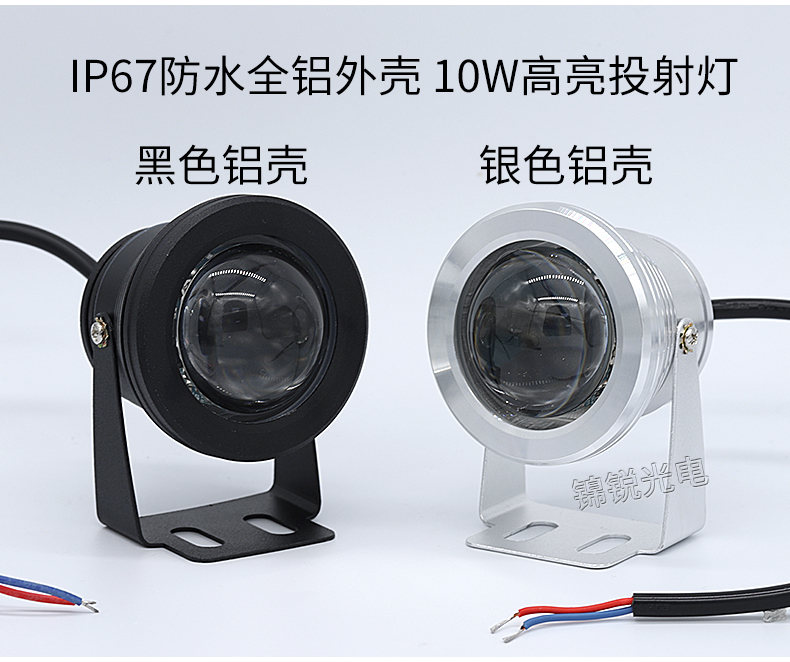 锦锐光电子 LED户外防水射灯 10W 平面散光-银壳【DC24V 白光) 1个