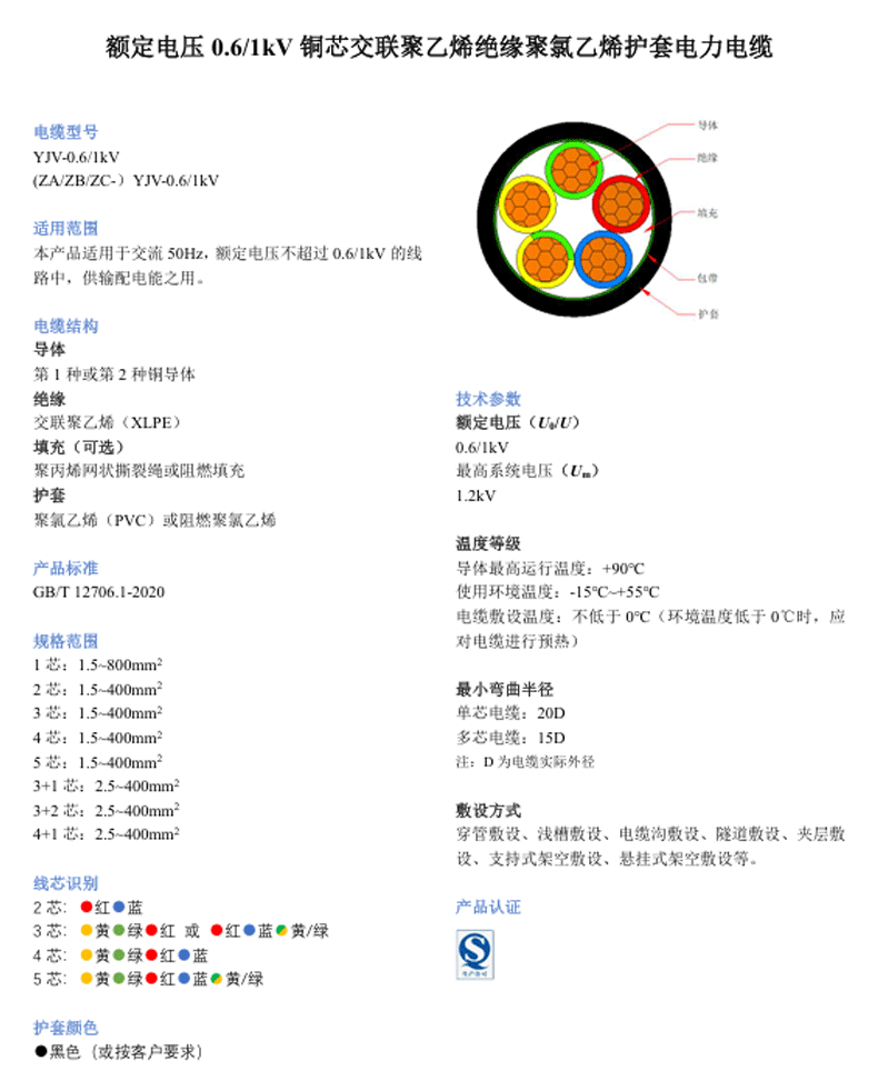 起帆 铜芯交联聚乙烯绝缘聚氯乙烯护套电力电缆 YJV-0.6/1kV-1×1.5 黑色 100米 1卷