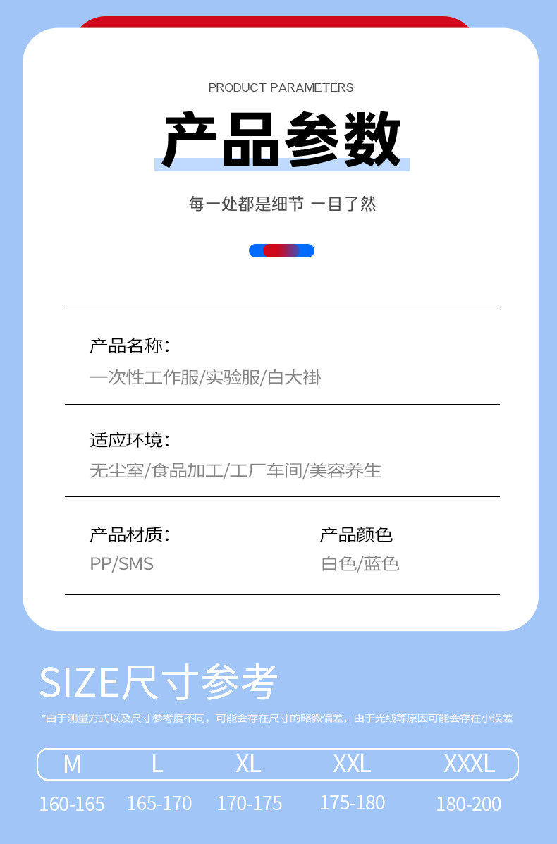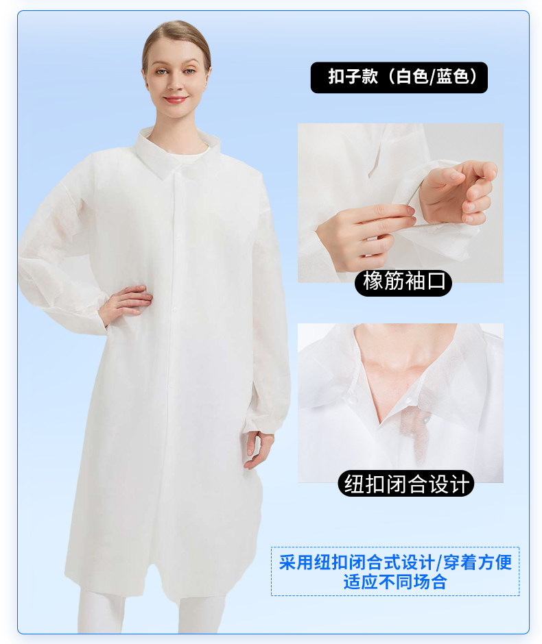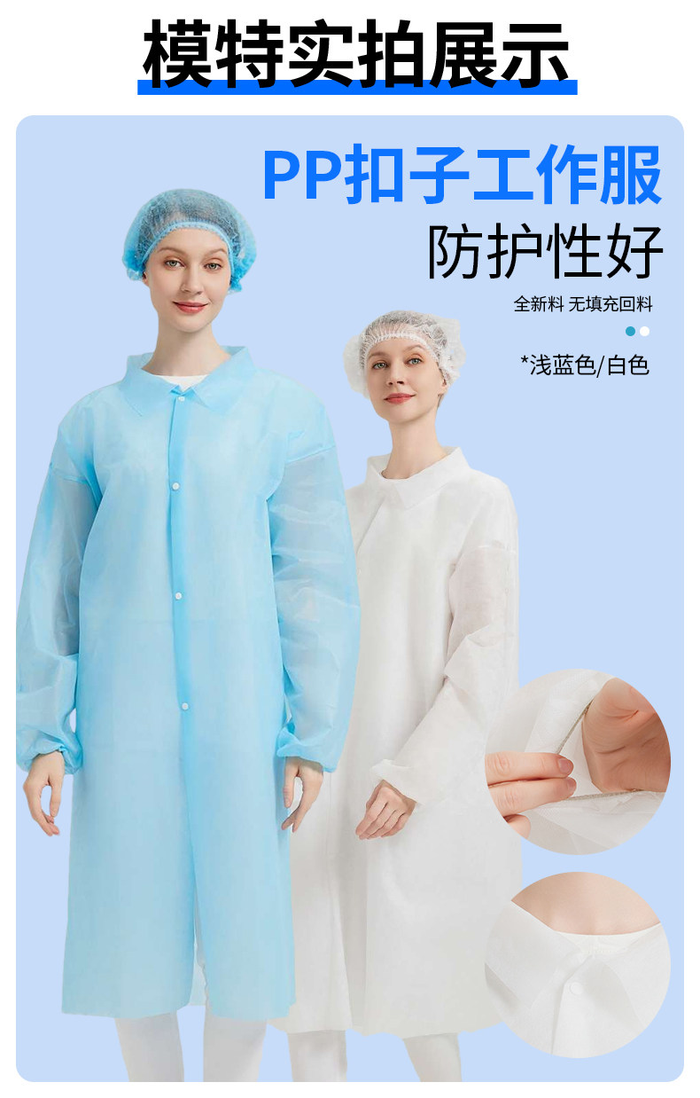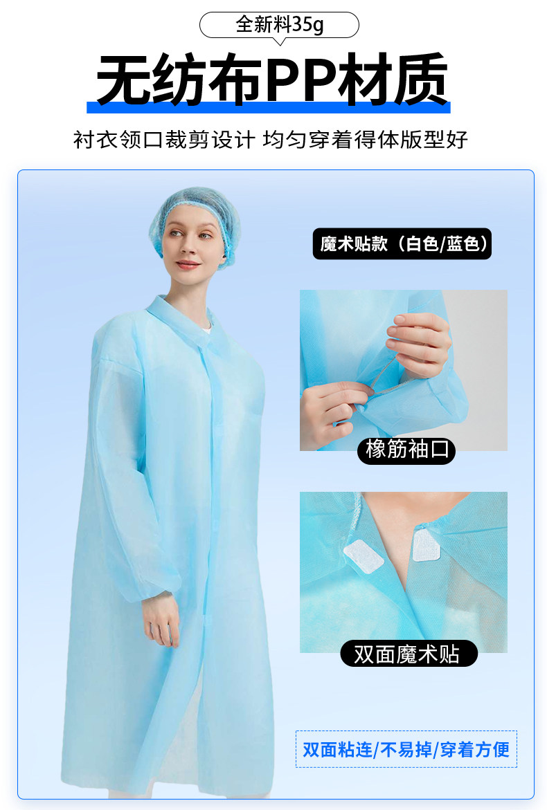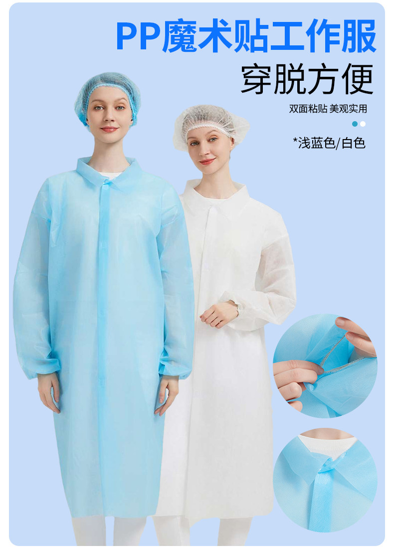 国产通用 一次性防护服 PP白色魔术贴橡筋袖口款 XXL 1件