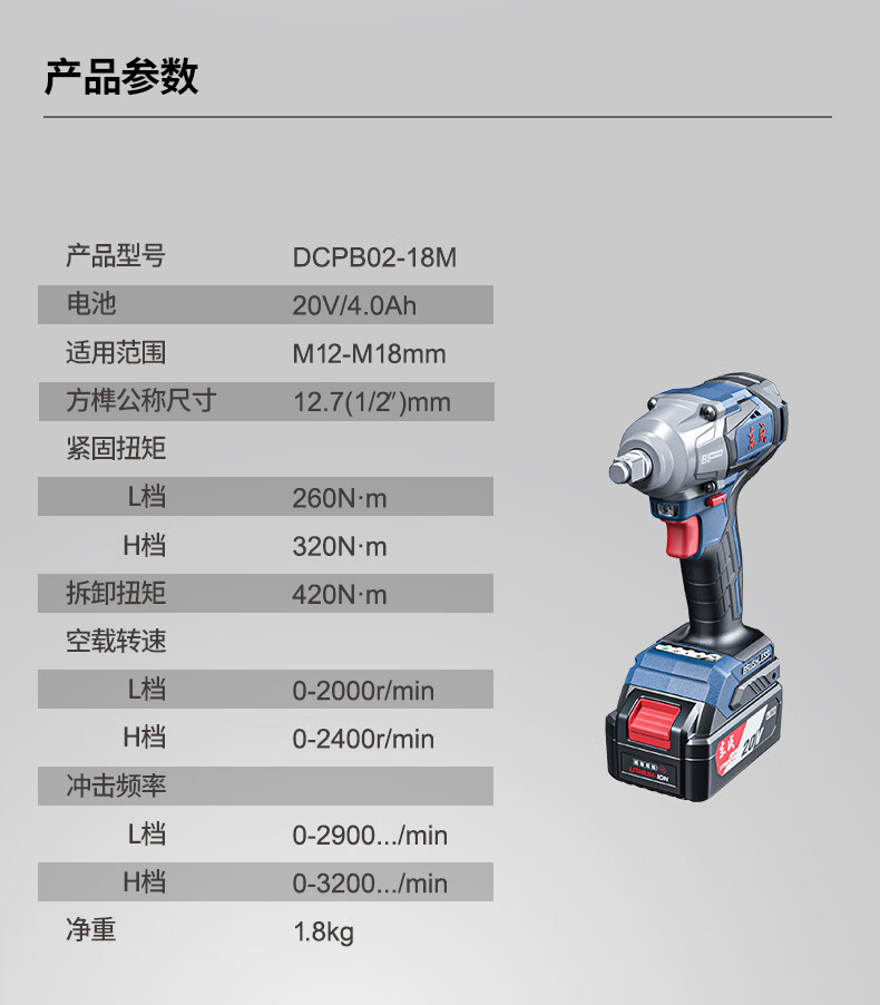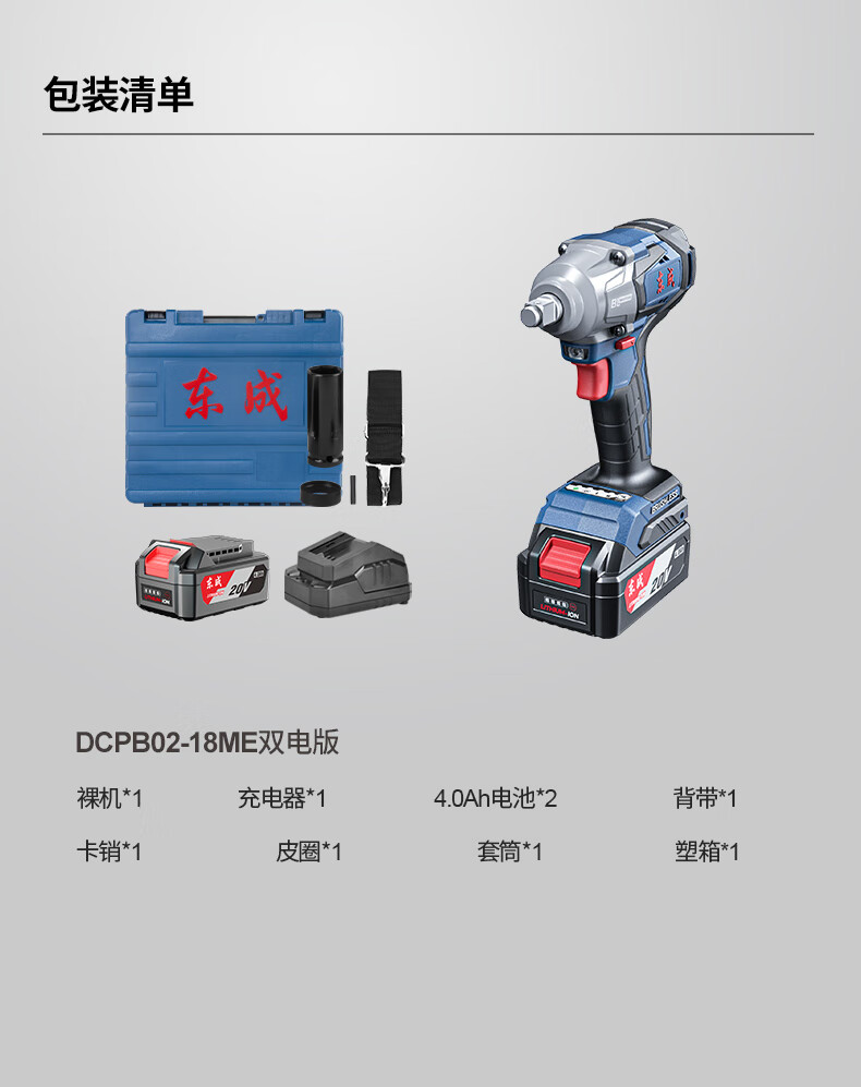 东成 充电式无刷冲击扳手 DCPB02-18MH 20V6.0Ah 一电一充 1把