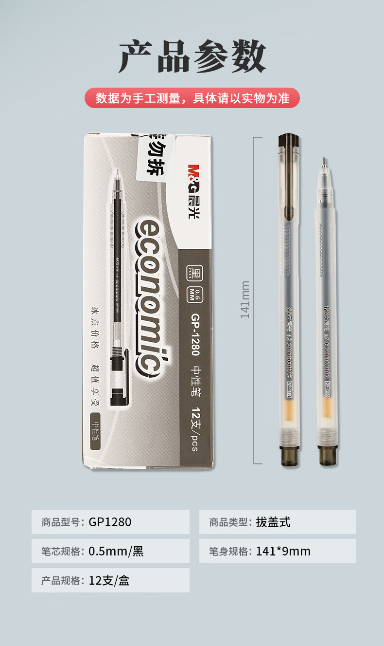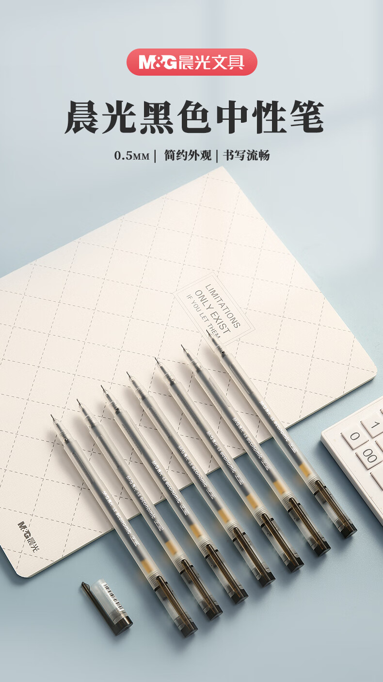 晨光 拔盖中性笔 GP1280 黑色 0.5mm 12支 1盒