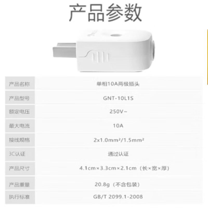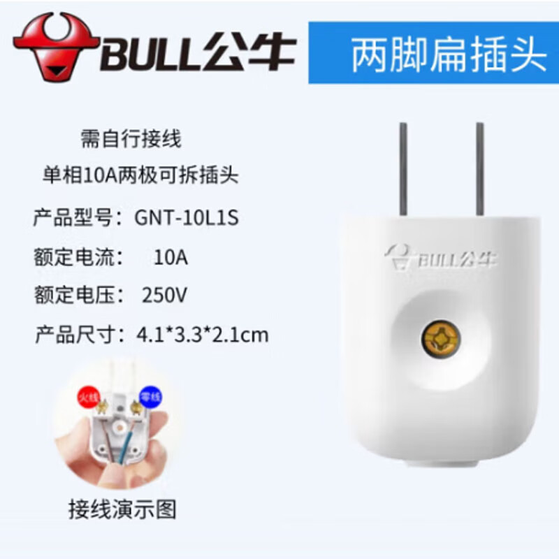 公牛(BULL) GNT-10L1S 10A 250V 二极 可拆安全插头 两脚电源插头 1个