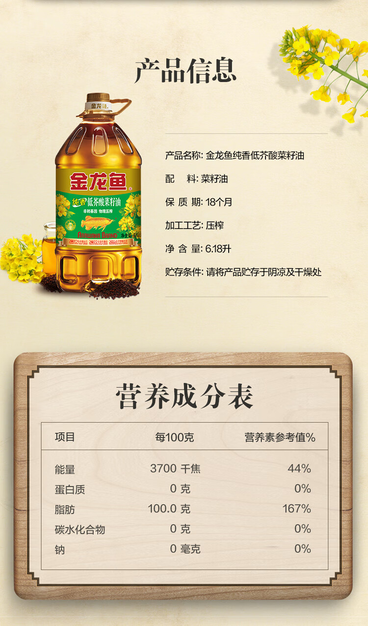 • 商品名称:金龙鱼 低芥酸特香家用菜籽油