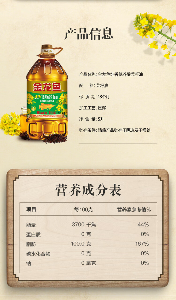• 商品名称:金龙鱼 低芥酸特香家用菜籽油