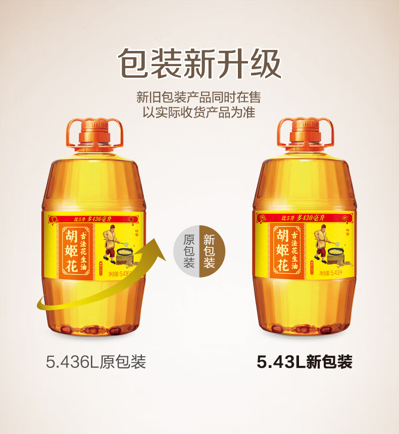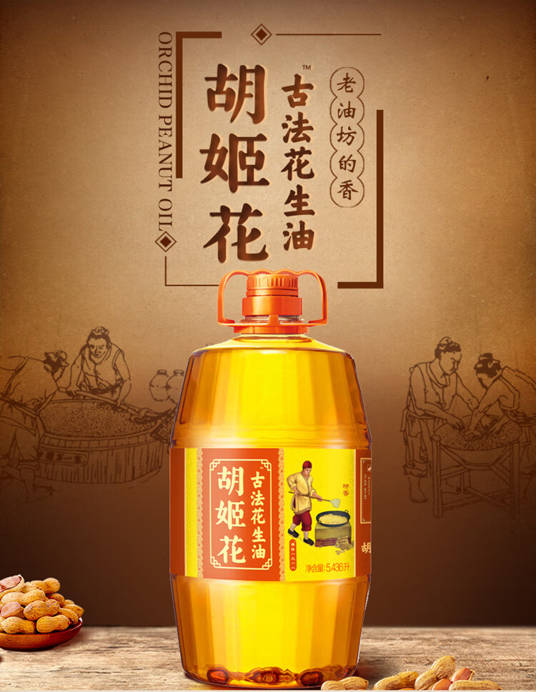 胡姬花 古法压榨花生油 古法花生油5.436L 1桶