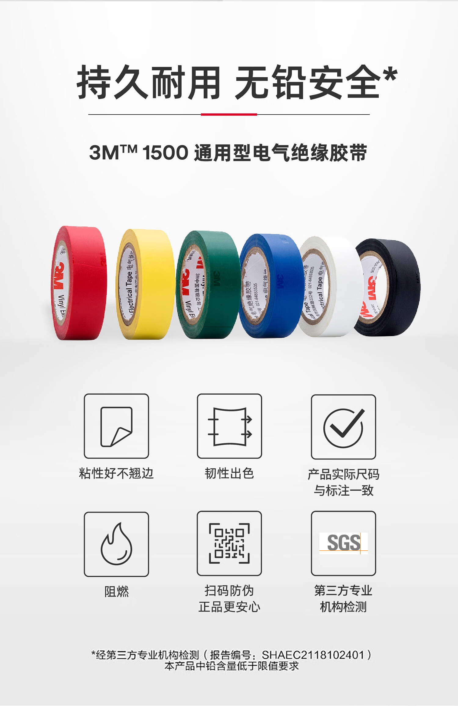 3M PVC电气绝缘胶带 普通型 150# 黄色 18mm×10m×0.13mm 1卷
