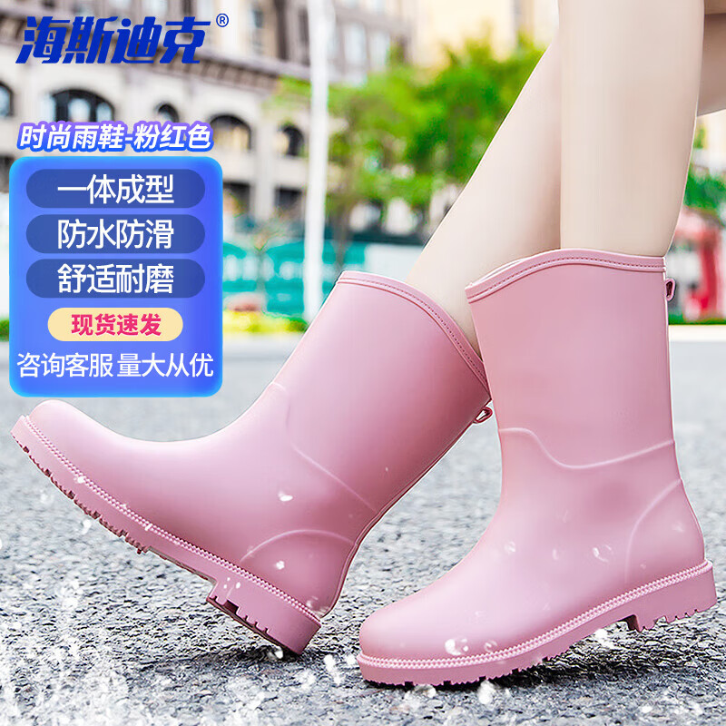 海斯迪克 日系雨鞋 HKsq-362 粉红色 41码 中筒 1双