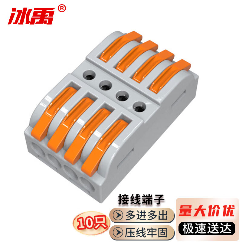 冰禹 按压快速接线端子 BJ317 4进4出SPL-224灰色 10只 1包