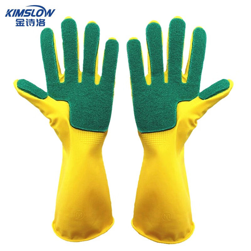 金诗洛 乳胶手套 KY013 黄色双手百洁布 1双