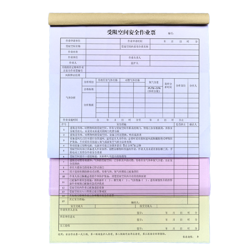 规格:受限空间作业票