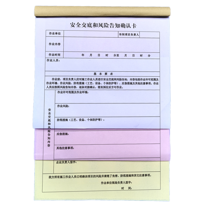 规格:安全交底和风险告知确认卡
