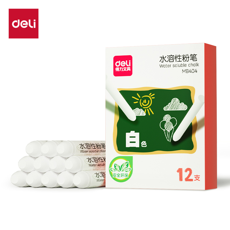 得力 水溶性粉笔 MB404 白色 Φ9.5*79mm 12支 1盒