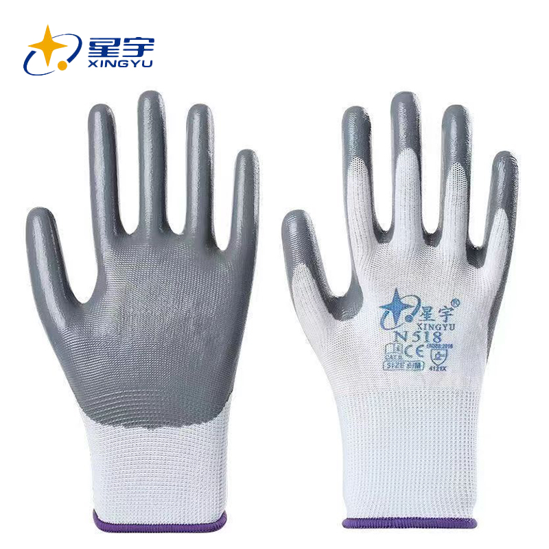 星宇 浸胶手套 N518 白纱灰 M码 1双