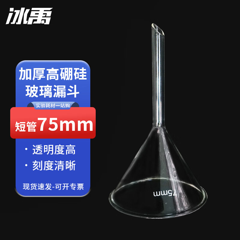冰禹 三角漏斗 BYhb-11 高硼硅玻璃 短管 75mm 1个