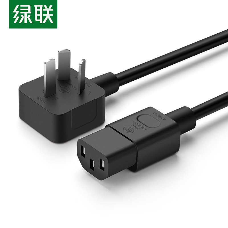 绿联 弯头三插电源线 3*0.75 黑色 1.5米 1根