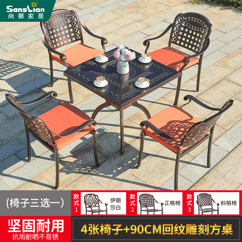 尚狮 铸铝桌椅套装 任选4椅+90回纹雕刻方桌 1套
