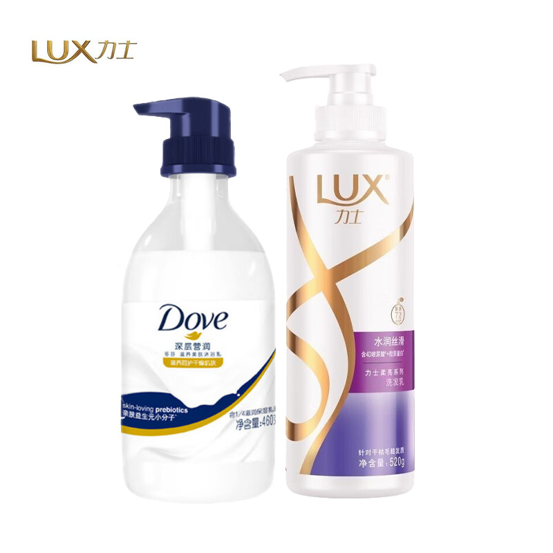 力士 多芬 丝滑柔亮洗发乳 洗发乳520g+沐浴乳460g 2瓶 1套