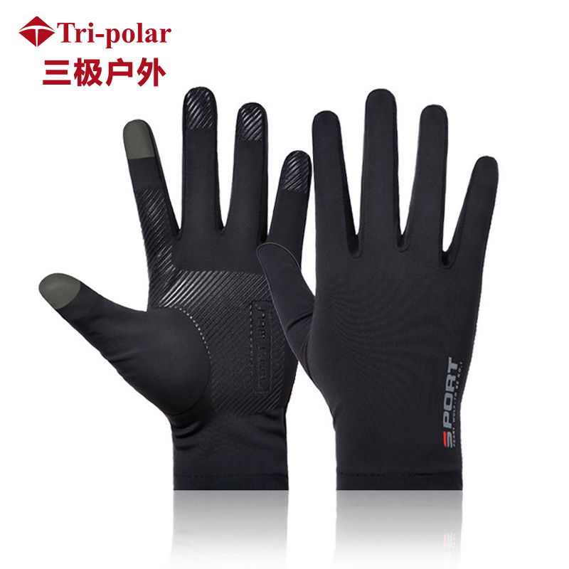 三极户外 骑行手套 TP3080 黑色 均码 露全指男款 1双