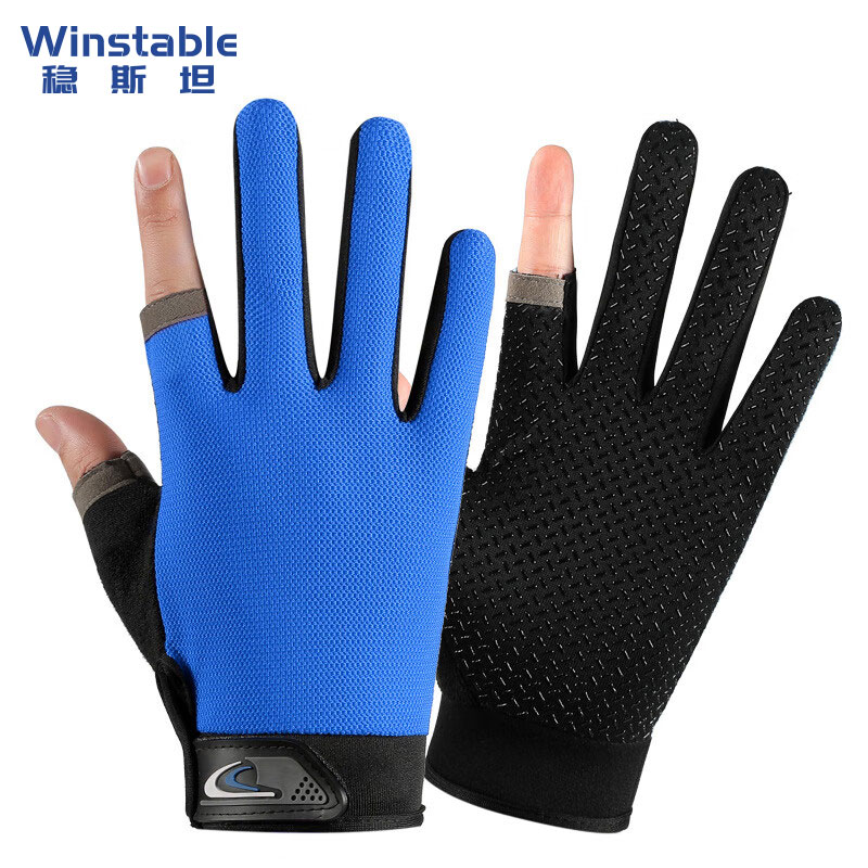 稳斯坦 漏二指钓鱼手套 WF040 蓝色 1双