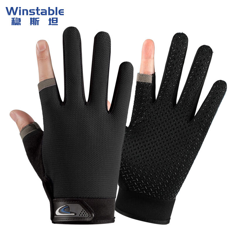 稳斯坦 漏二指钓鱼手套 WF040 黑色 1双