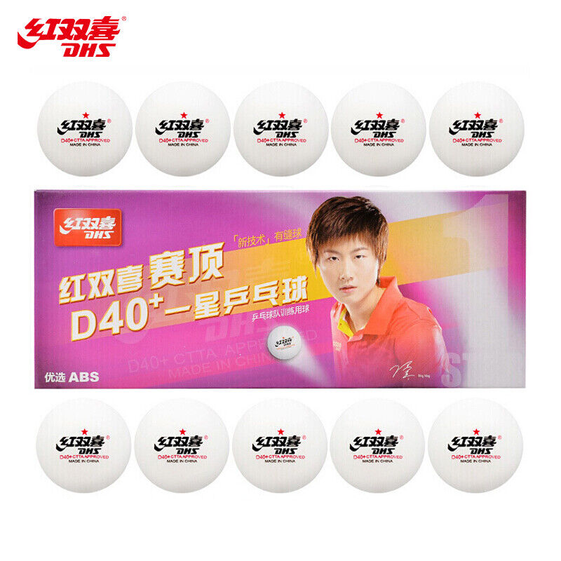 红双喜 赛顶一星乒乓球 CD40C 白色 10只 1盒