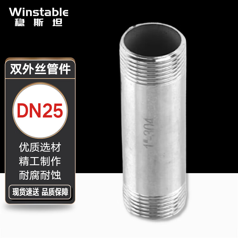 稳斯坦 不锈钢双头外丝 WT-483 304不锈钢 DN25*100mm 1个