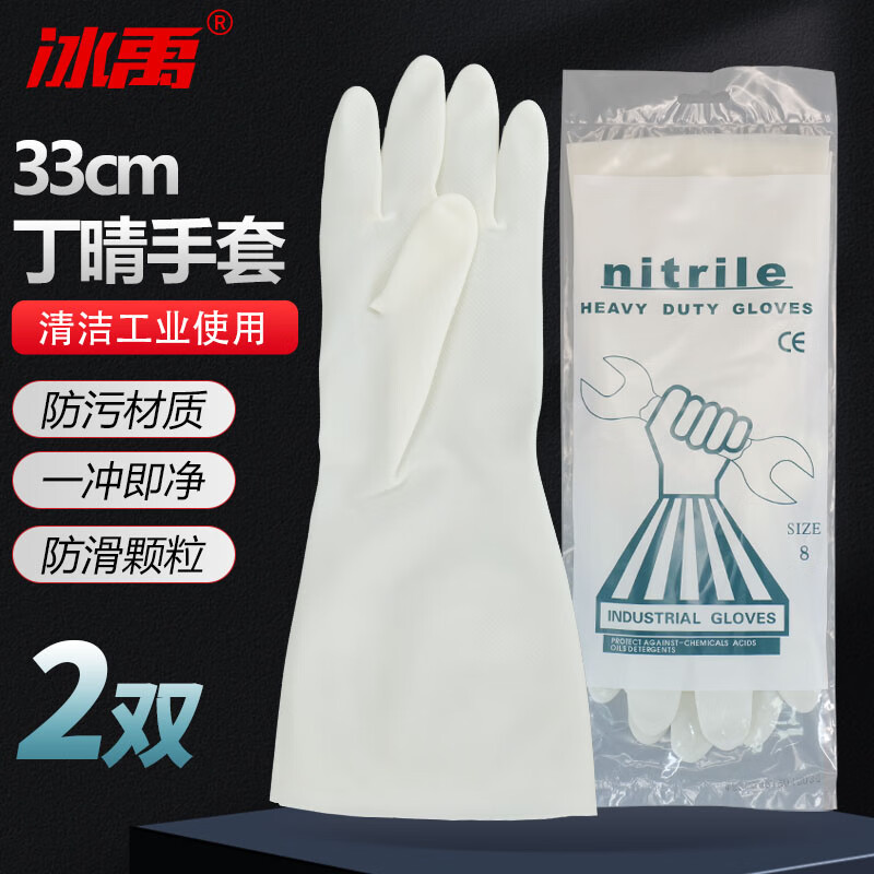 冰禹 长款丁晴手套 BH-491 白色 S码 33cm 2双 1包
