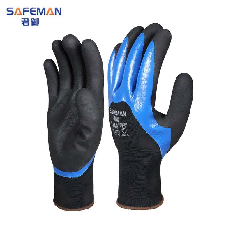 君御 十三针涤纶3/4浸丁腈磨砂手套 7160 蓝黑色 9码 1双
