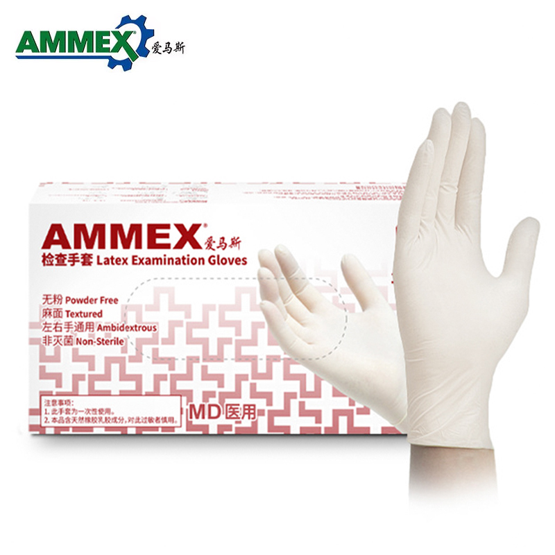 爱马斯 一次性乳胶手套 TLFVMD44100 乳白色 M码 6.2±0.2g 100只 1盒