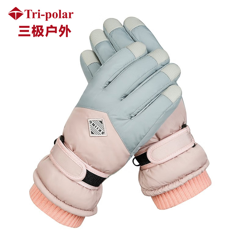 三极户外 滑雪手套 TP3409 粉绿拼 均码 1双