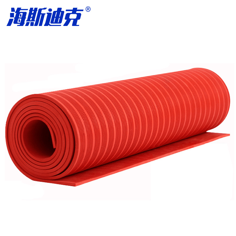 海斯迪克 高压绝缘胶垫 红色 条纹 耐25KV 1×10m×8mm厚 1卷