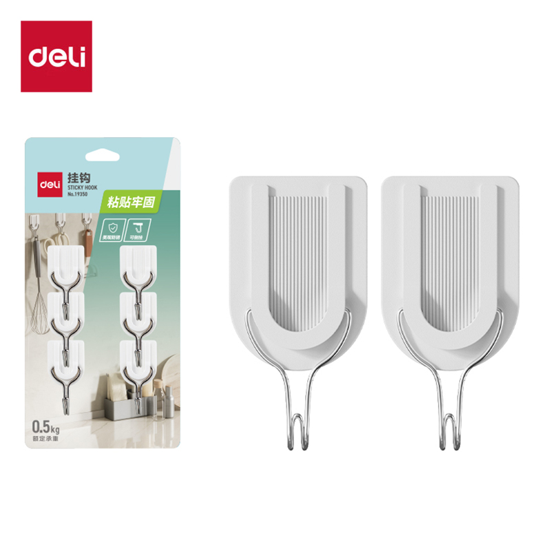 得力 U型胶粘挂钩 19350 白色 承重0.5kg 6只 1卡