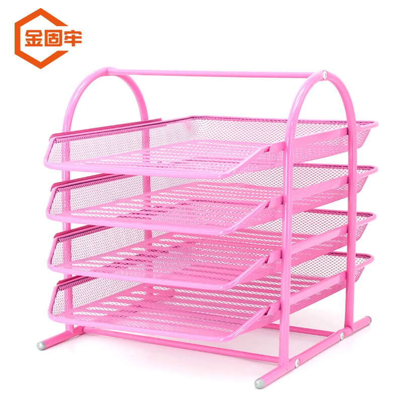 金固牢 铁网四层文件架 KCzy-89 粉色 1个