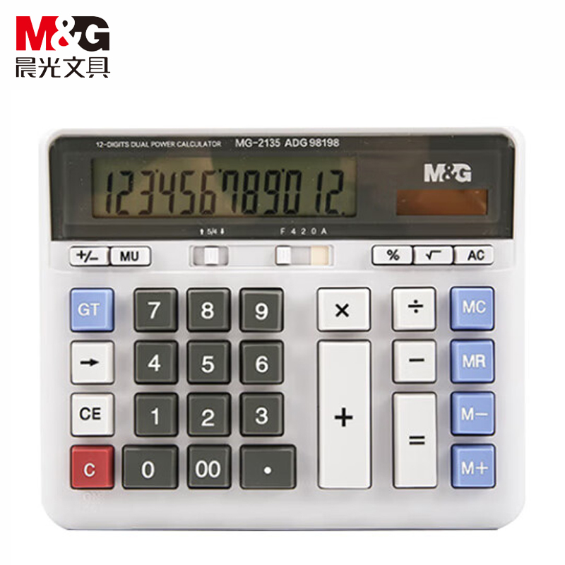 晨光 横版双电源计算器 ADG98117 12位大屏幕 白色 1个