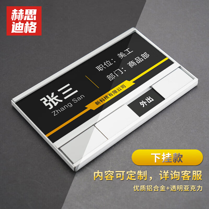 赫思迪格 人员去向牌 HGJ-678 14*9cm 铝合金下挂款 1个