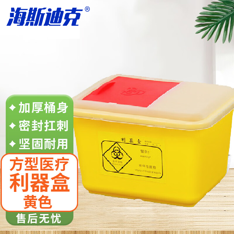 海斯迪克 方形利器盒 gnjz-1242 5L 黄色 10个 1件