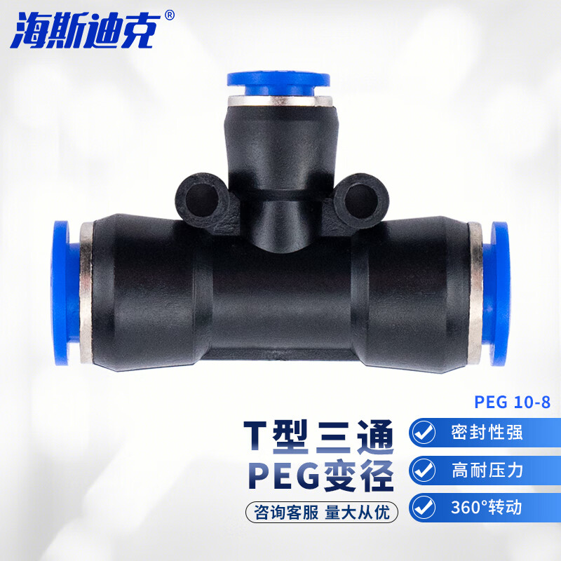 海斯迪克 T型三通变径接头 gny-235 PEG 10-8mm 1个