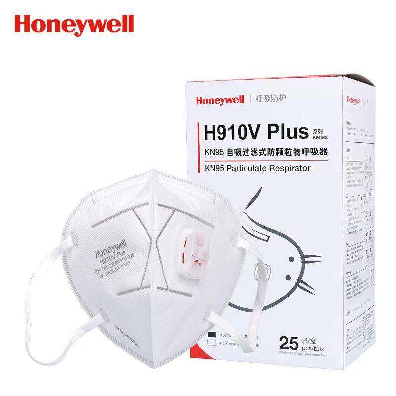 霍尼韦尔 KN95折叠式带阀口罩 H910V Plus 防颗粒物 白色 耳带 带呼气阀 25只 1盒