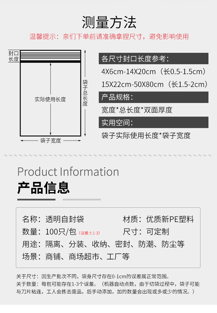 • 商品名称:海斯迪克 加厚透明PE自封袋