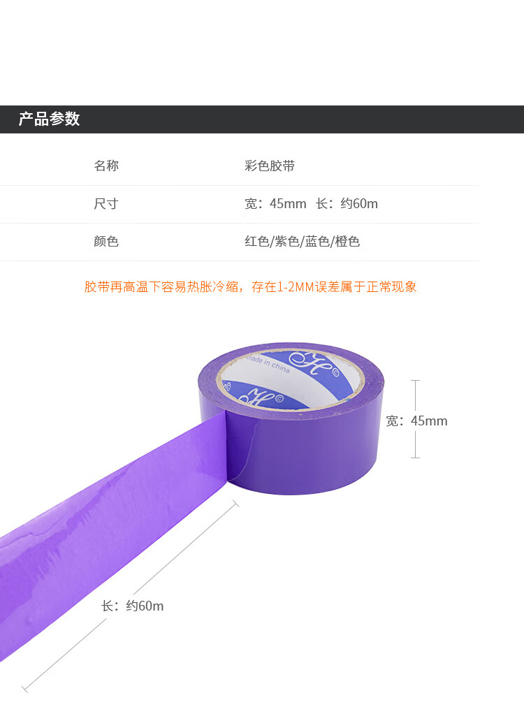 海斯迪克 彩色胶带 HKL-246 4.5cm*60m 紫色 1卷