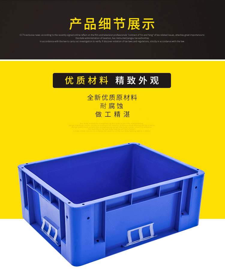 海斯迪克 加厚塑料周转箱 HKW-165 蓝色 400*300*150mm 1个